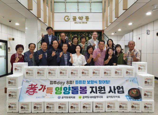 한편,'함께해요! 孝가득 영양돌봄 지원 사업'은 지난 4월 광양시 지역사회보장협의체 공모사업에 선정돼 광양시사랑나눔복지재단으로부터 500만 원을 지원받았으며, 골약동 사회단체로 구성된 ‘孝지킴이단’에서 50만 원을 추가로 지원받아 오는 9월까지 총 5회에 걸쳐 추진될 예정이다.