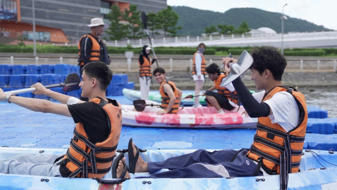 참가 학생들은 여수세계박람회장 내 해양레저스쿨에서 여름철 필수 수상 안전 교육을 받은 뒤 카약을 타고 바다 위를 가르며 즐거움을 만끽했다.
