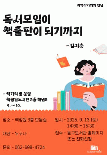 김 작가의 강연은 동구도서관 누리집을 통해 9월 12일까지 선착순으로 신청할 수 있다.