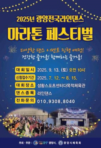 강영화 체육과장은 “이번 페스티벌이 라인댄스의 올바른 이해와 확산에 기여하길 바란다”며 “시민들이 몸과 마음을 건강하게 하고 삶의 질을 높이는 계기가 되기를 기대한다”고 말했다.
