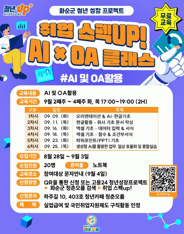 이번에 진행될 프로그램에서는 AI 및 사무자동화 소프트웨어(한글, 엑셀, 파워포인트 등) 사용법을 익혀 실무에 바로 적용할 수 있는 능력 함양을 위한 교육이 진행된다.