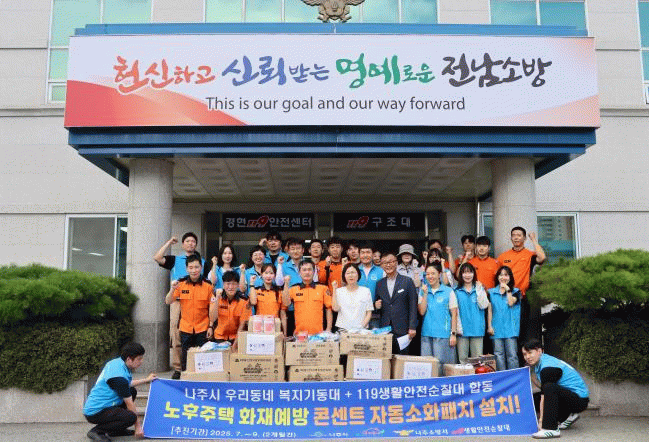 대상은 나주시에 거주하는 아동·장애인, 독거노인 등 취약계층 340가구로, 해당가구를 직접 방문해 노후 콘센트 및 멀티탭 점검과 교체, 콘센트용 소화패치 부착, 주택용소방시설 설치 여부 확인 등 화재 위험요소를 집중점검하고 제거하는 데에 중점을 뒀다.