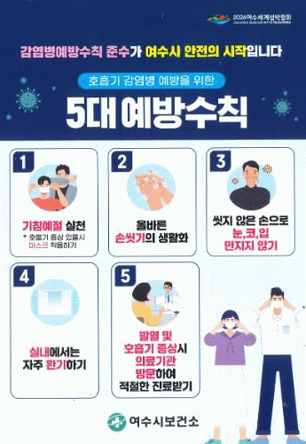 여수시는 여름철 폭염으로 에어컨 사용이 늘면서 실내 환기가 줄어들고, 휴가철 사람 간 접촉이 증가함에 따라 코로나19 등 호흡기 감염병 확산 가능성이 높아지고 있다고 설명했다.