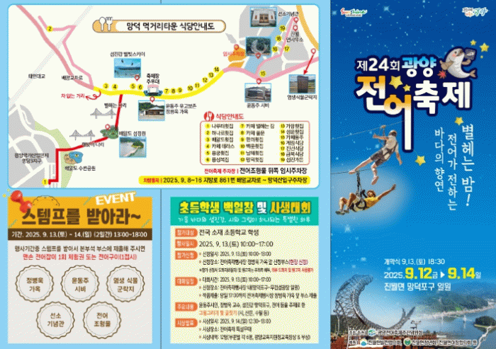 이현주 관광과장은 “망덕포구에서 건져 올린 전어는 섬진강과 바다가 만나는 기수역의 빠른 물살 덕분에 탄탄한 육질과 깊은 풍미를 자랑한다”며, “무엇보다 칼슘·미네랄·불포화 지방산이 풍부해 어린이의 뼈 성장부터 어르신의 혈관 건강까지 두루 챙길 수 있는 온 가족의 가을 먹거리”라고 소개했다.