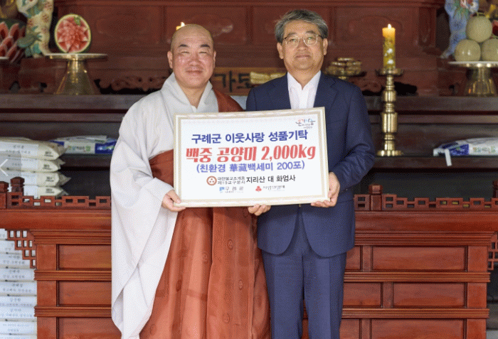 김순호 구례군수는 “화엄사가 매년 백중을 맞이해 소외된 이웃을 위한 나눔을 실천해 오시는 전통에 감사드린다”며, “전해주신 따뜻한 마음을 담아 꼭 필요한 이웃들에게 소중히 전달하겠다”고 말했다.