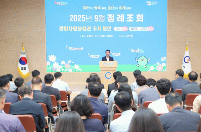 정 시장은 “우리시는 제2차 민생안전 소비쿠폰 지급에 맞춰 광양사랑상품권 200억 원을 추가 발행해 민생 회복에 힘쓰고 있다”며 “오는 9월 22일부터 시행되는 2차 지급과 관련해 1차 지급 과정에서 드러난 문제점을 면밀히 분석해 신속하고 정확한 지급이 이뤄지도록 준비하라”고 지시했다.