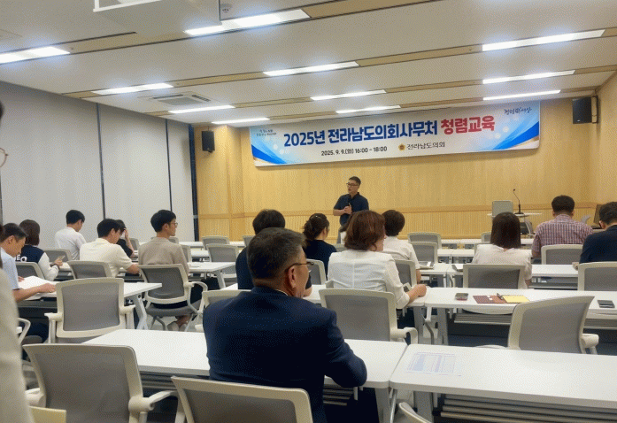 한편, 전라남도의회는 지난 8월 전체 의원을 대상으로 한 청렴 교육에 이어 두 번째 청렴 교육을 실시하며, 청렴의식 함양과 실천 문화 정착에 지속적으로 힘쓰고 있다.