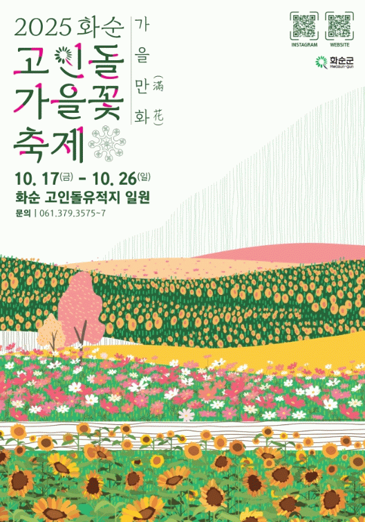 ‘가을꽃이 만개하다’라는 뜻의‘가을만화(滿花)’를 주제로 열리는 이번 축제는 유네스코 세계문화유산인 화순 고인돌 유적지의 광활한 대지에 만개한 코스모스, 해바라기 등 다채로운 가을꽃의 향연과 함께 축제의 정체성을 강화한 새로운 볼거리와 체험프로그램으로 관람객을 맞는다.