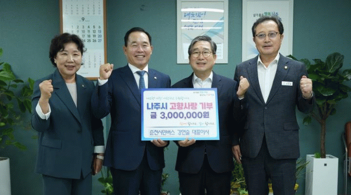 강상구 나주시 부시장은 “춘천시민버스 강연술 대표님의 따뜻한 나눔에 깊이 감사드린다”며 “보내주신 뜻을 반영해 시민 복지 증진과 생활 환경 개선에 최선을 다하겠다”고 전했다.