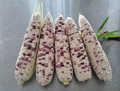 ‘얼룩찰1호’는 흰색과 보라색이 혼합된 얼룩무늬 알갱이를 가진 찰옥수수로 독특한 외관과 시각적 기호성으로 소비자들의 주목을 받고 있다.