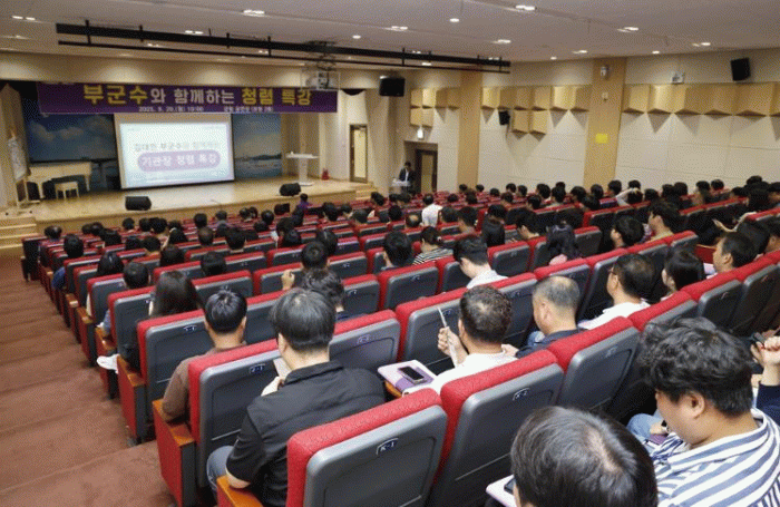 퀴즈에 이어 김대인 신안군수 권한대행이 직접 강단에 올라 ‘이순신 장군의 청렴 리더십’이라는 주제로 강연을 펼쳤다.