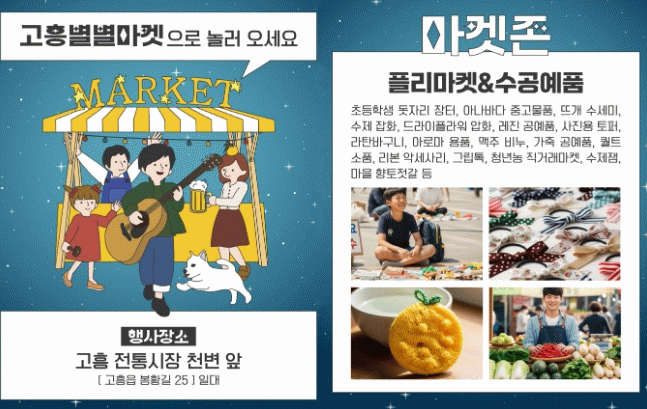 한편, 같은 기간 저녁 시간에는 고흥전통시장 일원에서 ‘별별야시장’도 함께 운영된다.