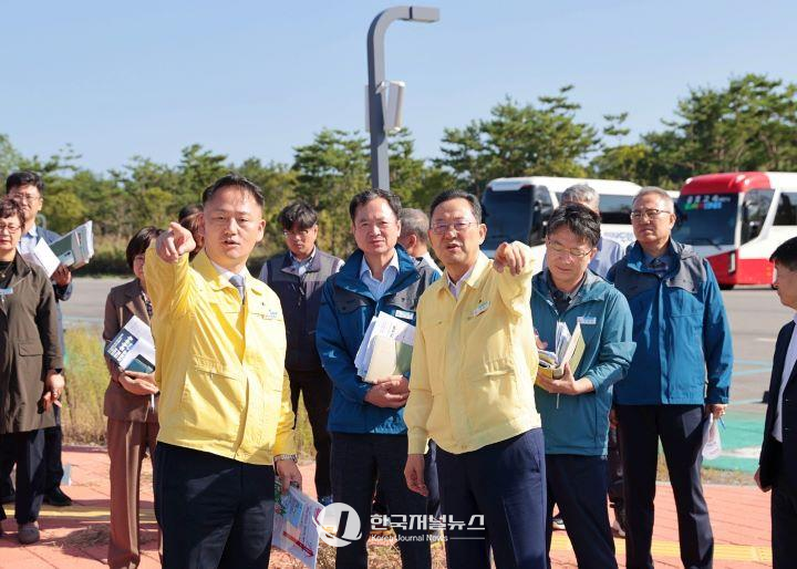 명현관 군수는 10일 대회기간 임시주차장이 운영될 산이면 구성리 솔라시도기업도시에서 현장 보고회를 갖고, 대회 준비 사항을 점검했다.