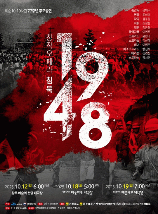 창작오페라 ‘침묵 1948’은 1948년 10월 여수에서 발생한 여순사건을 소재로 민간인 희생을 중심으로 구성된 작품으로 비극의 역사 속에서 인간의 존엄과 평화의 메시지를 음악과 무대예술로 풀어내 관객들에게 깊은 울림을 전할 예정이다.