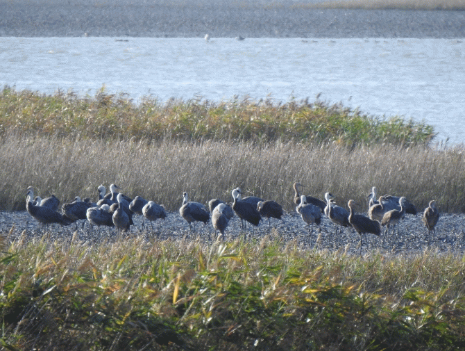 앞서 지난 20일 순천만 상공을 선회했던 흑두루미 9마리는 남하해 21일 일본 이즈미에 도착한 것으로 확인됐다.