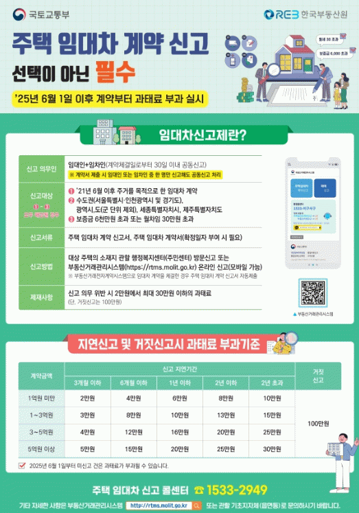 신고 의무를 위반하면 임대인과 임차인 각각 2만 원에서 최대 30만 원까지, 거짓 신고 시에는 최대 100만 원의 과태료가 부과된다.