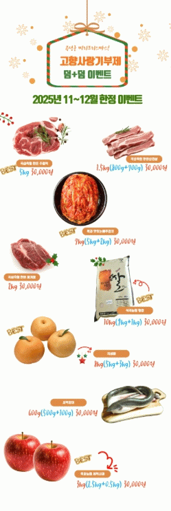 이번 행사는 11월부터 12월까지 한정 진행되며, 곡성 답례품몰의 인기 상품 22개 품목을 대상으로 최대 200% 이상 증량된 답례품을 제공한다.