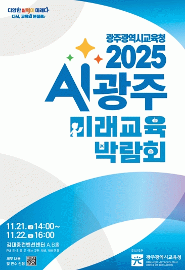 이정선 교육감은 “AI광주미래교육 박람회는 교사와 학생, 시민이 함께 미래교육의 변화를 체험하고 공유하는 뜻깊은 자리”라며 “AI와 인간다움이 조화를 이루는 광주형 미래교육 모델이 확산되도록 최선을 다하겠다”고 말했다.