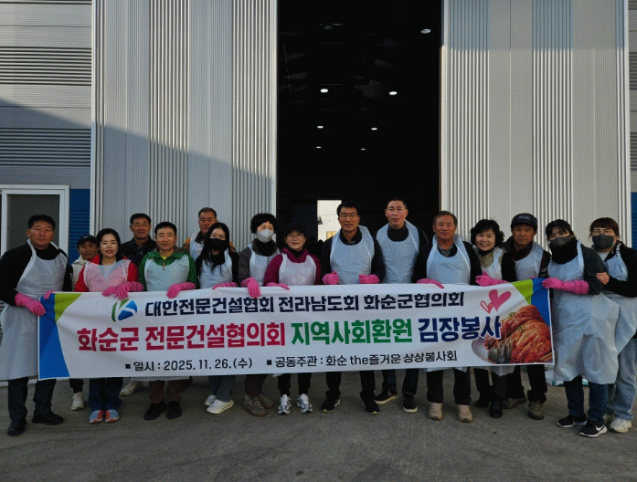 화순읍 서태리에 소재한 협회 사무실에서 김장 김치 200포기를 손수 담가 복지 사각지대에 있는 주변의 어려운 이웃 50가구에 전달했다. 전체 소요 비용은 200만 원 수준이다.