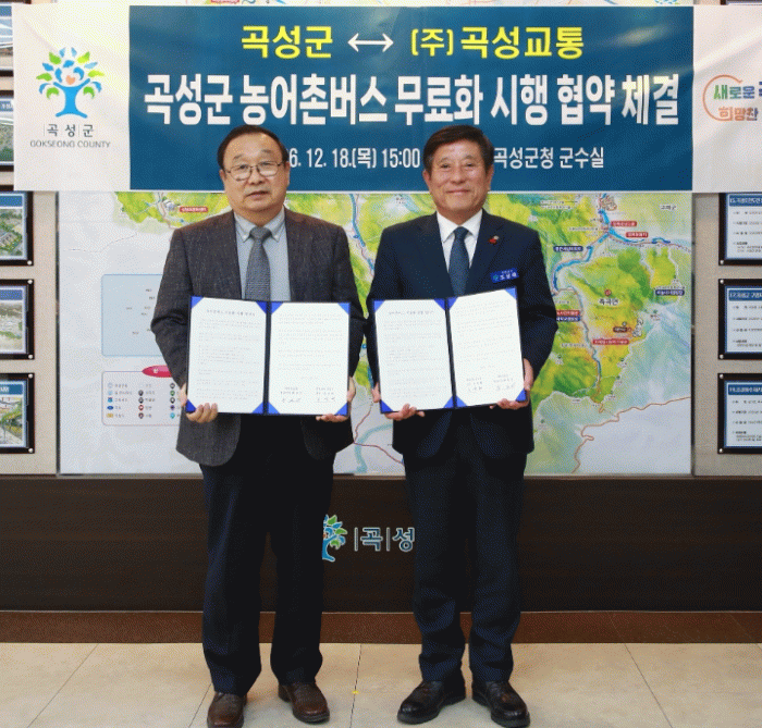 이에 앞서 지난 18일, 곡성군과 ㈜곡성교통은 군내버스 무료화 시행을 위한 업무협약을 체결하고 제도의 안정적 운영을 위한 협력 체계를 구축했다.