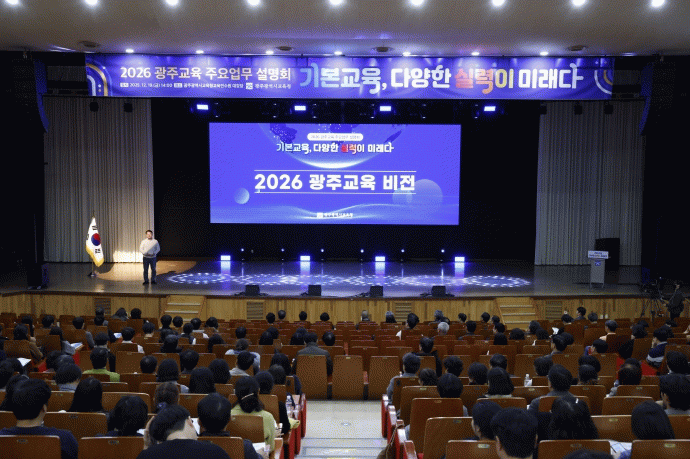 시교육청은 19일 광주광역시교육청교육연수원 대강당에서 학교장 및 주요 기관장 등 1천여 명이 참석한 가운데 ‘2026 광주교육 주요업무 계획 설명회’를 개최했다.