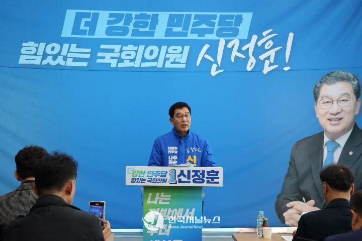 끝으로 신정훈 예비후보는 “3선 국회의원으로서 나주·화순 발전의 마지막 소명을 다하겠다. 30년 동안 가장 낮은 곳에서 주민과 함께 울고 웃었던 신정훈이 지방의 위기 앞에, 정치의 위기 앞에, 시대적 사명과 소임을 다할 수 있도록 간곡히 지지를 부탁드린다”며, 제23대 총선 불출마를 선언했다.