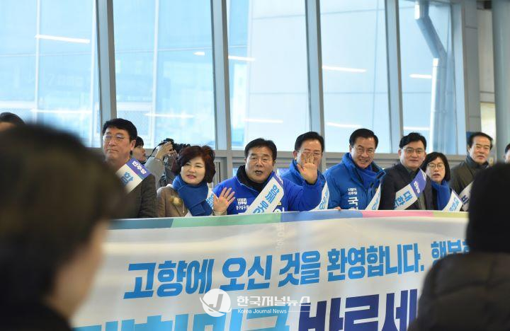 광주송정역과 유스퀘어 광주종합버스터미널에서 각각 진행된 귀성객 환영 인사는 이병훈 위원장(동구남구을 국회의원)을 비롯해 광주지역 국회의원(윤영덕, 송갑석, 조오섭, 이형석, 이용빈, 민형배)과 당 소속 지방의원 및 핵심당원 등 100여 명이 참여했다.
