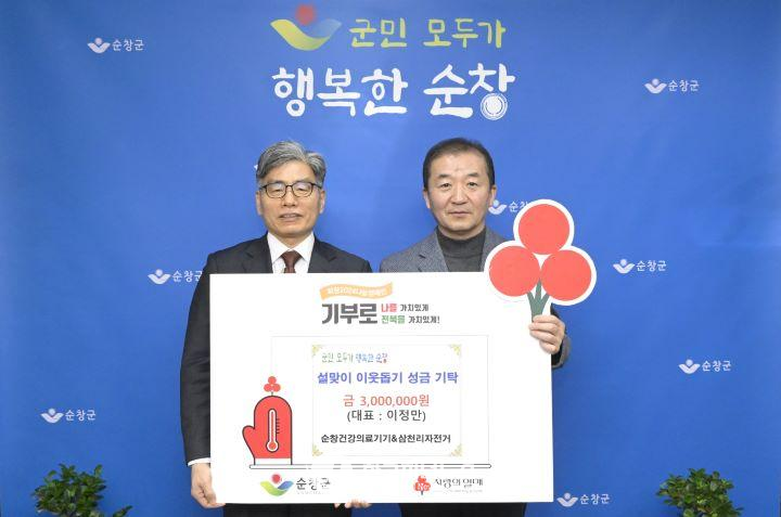 이정만 대표는 2004년부터 순창에서 건강의료기기와 자전거를 취급하며, 거동이 불편한 어르신들에게 건강보조기기 등 의료보장구 보급을 위해 애써왔으며, 이번 성금은 순창군 내 생활이 어려운 가정들을 위해 사용될 예정이다.