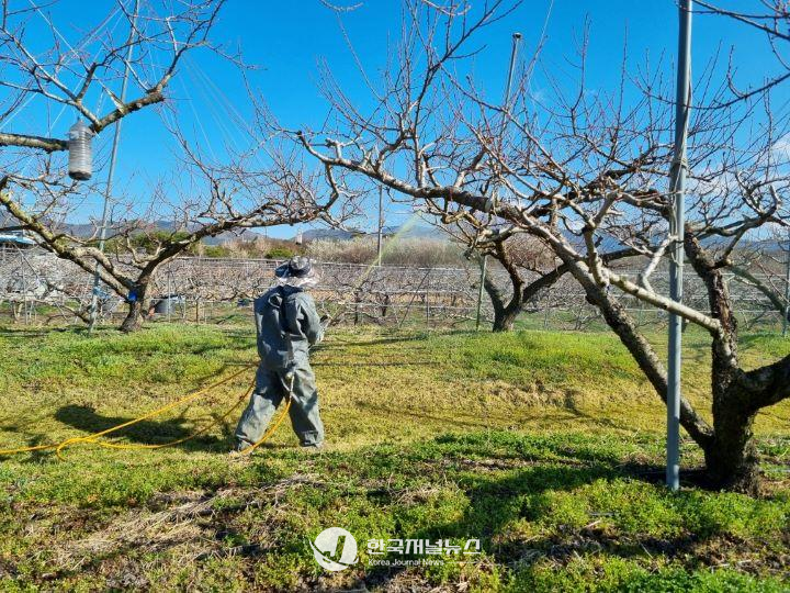 농업기술센터 관계자는 “지난해 개화기 서리피해, 생육․수확기 강우량의 증가 등으로 병해충의 발생량이 심했기 때문에 월동병해충 밀도가 높을 것으로 예상되며 금년도 복숭아 첫 꽃이 피는 시기가 3월 말로 예측됨에 따라 개화 시기에 맞춰 적기에 동계방제를 할 수 있도록 기술지원에 나서고 있다”라고 밝혔다