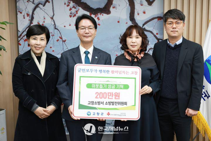 김종학 고창소방서 소방발전위원회 위원장은 “경제적으로 힘들게 살아가고 있는 이웃들에게 조그만 도움이 됐으면 한다”며 200만원의 성금을 기탁했다.