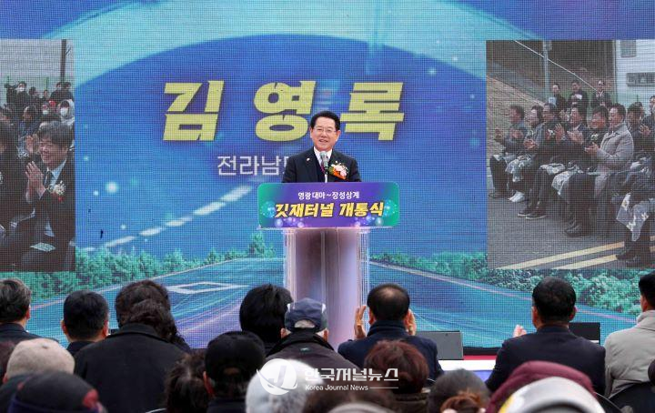 김영록 지사는 “지역 간 상생을 이끌 깃재터널 개통을 축하하며, 앞으로도 영광과 장성이 전남을 대표하는 인기명소(핫플레이스)로 성장하고 경제·관광·문화 핵심거점이 되도록 온힘을 다하겠다”고 말했다.