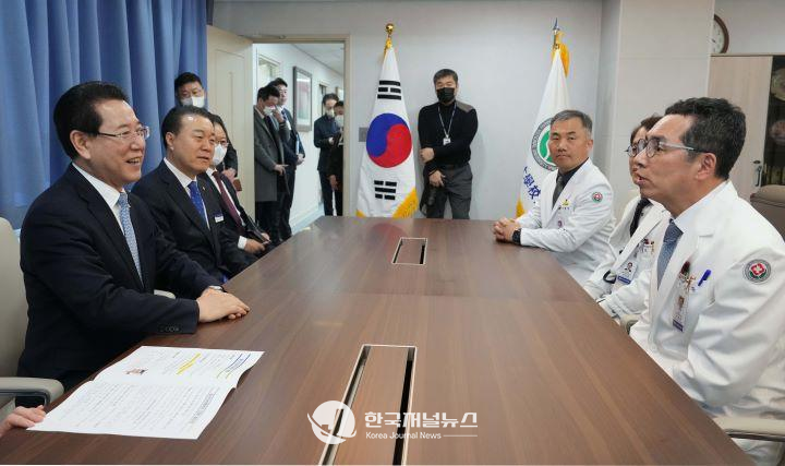 김영록 지사는 이날 연쇄 간담회에서 “권역책임의료기관으로서 비상진료체계 유지에 최선을 다해준 것에 감사를 표한다”며 “전공의들이 하루빨리 복귀해 교수님들과 같이 근무하길 바란다”고 밝혔다.