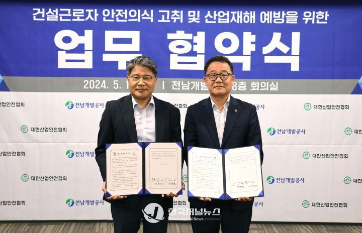 이번 협약은 창립 이래 최초 공공주택 사업을 시행하는 전남개발공사가 선진안전관리 기법인 ‘안전코칭’ 시행을 위해 대한산업안전협회와 뜻을 모아 마련되었으며, 양 기관은 △건설공사 산업재해 예방 기술지도 △건설근로자안전보건교육 △건설현장 안전문화 확산 등 고위험 건설공사에 대한 산업재해 유발 위험요인을 선제적으로 발굴·시정하여 근로자가 안심하고 일할 수 있는 안전한 작업환경을 구축할 방침이다.