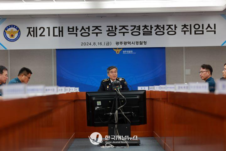 광주경찰을 항상 성원해 주시는 141만 광주시민들께도 고마움과 반가운 마음을 담아 인사말씀을 드리며 아울러 광주경찰을 훌륭히 이끌어 주신 전임 한창훈 청장님께도 경의와 깊은 감사의 말씀을 드린다고 말했다.