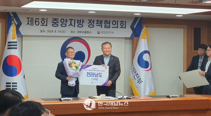 [한국저널뉴스] 전라남도는 행정안전부의 상반기 지방재정 신속 집행 평가에서 우수한 성적을 거둬 최우수상 수상과 함께 재정 인센티브 1억 5천만 원을 확보했다고 밝혔다.