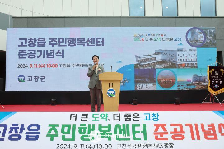 11일 고창군에 따르면 이날 오전 고창읍주민행복센터 준공 기념식을 열었다. 행사에는 심덕섭 고창군수와 조민규 고창군의회 군의장 및 군의원, 김성수 전북특별자치도의회 예산결산위원장과 김만기 도의원, 지역주민 200여명이 참석했다.