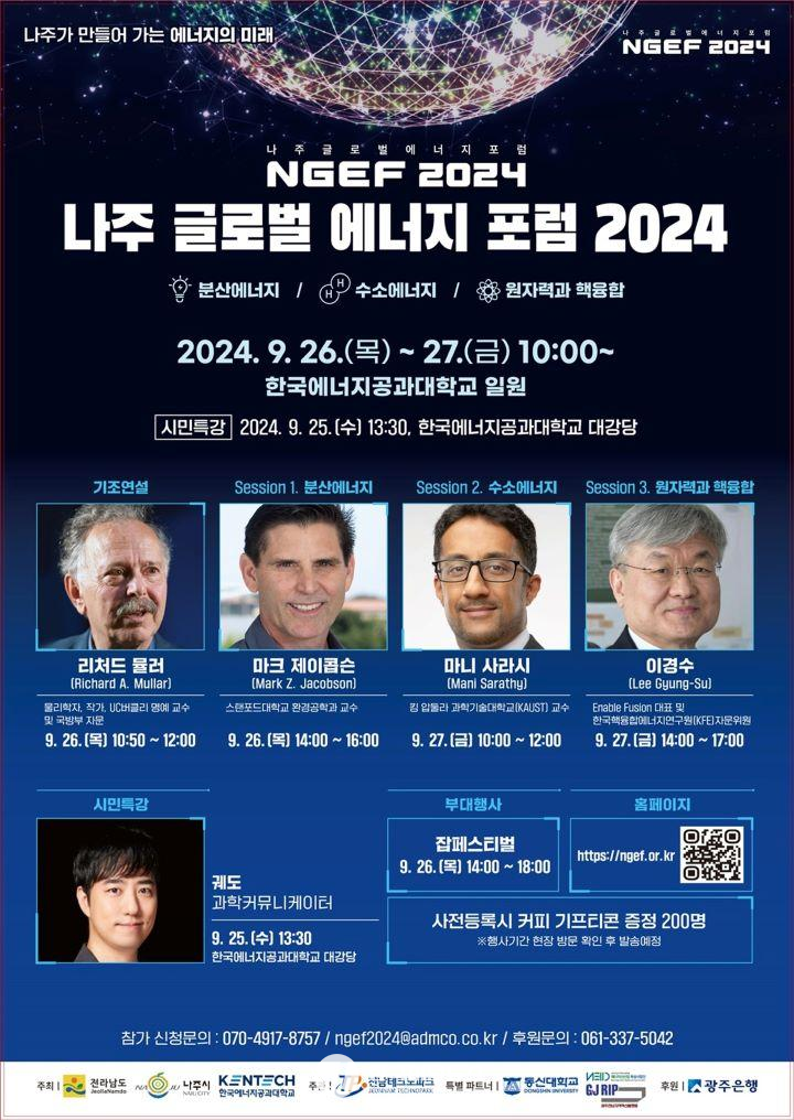 나주글로벌에너지포럼2024는 오는 26일과 27일 이틀에 걸쳐 광주·전남 공동(나주 빛가람) 혁신도시에 위치한 한국에너지공과대학교 일원에서 열린다.