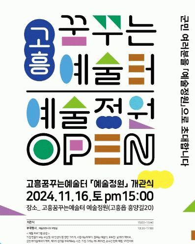 이번 개관식은 오는 11월 16일 오후 3시 꿈꾸는 예술터 광장에서 기존의 관행을 벗어나 참여자와 함께 즐기는 전시·축제형으로 진행될 예정이다.