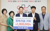 영암군 윤규진 기자2025. 07.10[한국저널뉴스]광주 동구는 최근 지산1동 동백회로부터 인재 육성에 써달라며 장학금 1백만 원을 기탁받았다고 밝혔다. ‘동구에서 백세까지’라는 뜻을 담고 있는 동백회는 윤승오 지산1동 주민자치회장을 비롯해 주민과 관내 동 거주 직원 등으로 구성된 모임으로, 지역사회 발전과 주민 간 소통을 도모하고 있다. 이번 장학금은 회원들이 십시일반 회비를 모아 마련한 것으로, 동구 인재육성장학회에 전달됐다. 장택용 회장은 “작은 정성이지만 우리 지역 학생들의 밝은 미래에 보탬이 되길 바란다”고 말했다. 임택 동구청장은 “지역을 사랑하는…