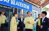 전라남도 윤규진 기자2025. 07.08[한국저널뉴스] 고창군이 임시터미널 운영에 들어가면서 ‘터미널도시재생 혁신지구 사업’이 본격화 됐다. 심덕섭 고창군수는 7일 오후 임시터미널 운영 현장을 찾아 주민들과 운전기사들의 불편사항을 챙기며 ‘터미널도시재생 혁신지구 사업’ 빠른 완성을 약속했다. 이날 새벽 0시10분 인천공항행 버스를 시작으로 고창군 관내 버스는 기존 터미널과 500m(도보 5분)가량 떨어져 있는 임시터미널(고창읍 하나로마트 뒤, 목화예식장 옆)에서 승·하차가 이뤄지고 있다. 고창군은 한달 전부터 거리 곳곳에 현수막을 게시하고, 마을이장과 …