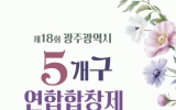 의회 윤규진 기자2025. 06.27[한국저널뉴스]광주 동구는 제18회 광주 5개구 연합합창제가 오는 7월 2일 오후 7시 30분 빛고을시민문화관에서 열린다고 밝혔다. 이번 합창제는 광주 5개 자치구 구립합창단이 모인 ‘광주광역시 5개구 합창연합회(회장 박병국 동구 합창단 지휘자)’가 주관한다. 올해로 18회를 맞은 이날 행사는 광주 5개구 합창단이 한자리에 모여 지난 1년 동안 갈고 닦은 실력을 선보이는 무대로 각 구 합창단은 아름다운 하모니로 관객들에게 깊은 감동을 선사할 예정이다. 이날 공연에서는 ‘나는 반딧불’, ‘못잊어’, ‘젊어지는 샘물’, ‘보리밭’…