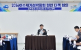 여수시 윤규진 기자2025. 05.21[한국저널뉴스]정기명 여수시장이 지난 20일 2026여수세계섬박람회 조직위원회를 방문해 현안 대책 회의를 가졌다. 이번 회의는 정기명 시장을 비롯해 최정기 부시장, 김종기 조직위 사무총장, 간부 공무원 등 30여 명이 참석한 가운데 섬박람회 준비 상황과 추진계획에 대한 보고, 토론 순으로 진행됐다. 정 시장은 “최근 세계지방정부협의회(ICLEI)의 협력 기관으로 지정되면서 공식 로고 사용을 승인받고, 서울시에 이어 부산시와 섬박람회 성공 개최를 위한 협약을 체결해 국내외 네트워크를 탄탄히 구축하고 있다”며 “박람회까지 남은 1년…