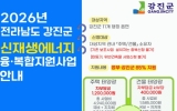 강진군 윤규진 기자2025. 03.18[한국저널뉴스]강진군이 산업통상자원부와 한국에너지공단이 주관하는 ‘2026년 신재생에너지 융복합지원사업’ 공모 신청을 위한 수요조사를 오는 20일부터 4월 10일까지 실시한다. 신재생에너지 융복합지원사업은 에너지 자립도시 조성과 탄소중립 기반 구축을 위해 주택, 건물(상업·공공)에 2종 이상의 신재생에너지원(태양광, 태양열, 지열) 설비를 설치·지원하는 것으로 공모사업에 선정될 경우 2026년에 본격적인 설치가 진행된다. 신청 대상은 강진군 지역 주택, 건물 소유자로 가구별 1개의 에너지원만 신청이 가능하다. 본인서명사실확인…