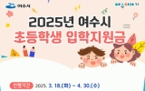 여수시 윤규진 기자2025. 03.17[한국저널뉴스]여수시는 초등학교 신입생 1,750여 명을 대상으로 필요한 물품을 구매할 수 있는 입학지원금 10만 원을 지원한다고 밝혔다. 지원 대상은 초등학교 입학일(3월 4일) 기준 여수시에 주소를 두고 초등학교에 최초 입학한 학생이다. 학생의 보호자는 3월 18일부터 4월 30일까지는 주소지 읍면동 주민센터를, 5월 7일부터 8월 29일까지는 여수시 평생교육과(진남체육관 내)를 방문해 신청하면 된다. 시는 신청 즉시 지원 대상 여부를 확인해 선불카드를 지급할 계획이다. 선불카드는 관내에서만 사용할 수 있으며 대형마트, …