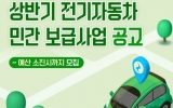 문화 윤규진 기자2025. 02.14[한국저널뉴스]전남 무안군은 깨끗한 대기 환경 조성과 온실가스 배출량 감소 등 탄소중립 조기 실현을 위해 오는 17일부터 친환경 전기자동차 구매보조금을 지원한다. 보조금은 전기승용차 140대, 전기화물차 30대로 총 170대를 지원할 계획이며, 보급 차종은 환경부 무공해차 통합 누리집 또는 무안군 홈페이지 공고문에서 확인할 수 있다. 신청 자격은 ▲개인은 접수일 기준 90일 이상 무안군에 주소를 둔 만 18세 이상 군민, ▲개인사업자는 대표자의 주소와 사업장 소재지가 모두 무안군인 사업자, ▲법인은 무안군에 사업장(본사, 지사…