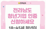 전라남도 윤규진 기자2025. 01.30[한국저널뉴스]전라남도는 지방소멸 위기 극복과 청년이 기업하기 좋은 환경 조성을 목표로 2025년 전라남도 청년기업 인증제도를 본격 시행한다고 밝혔다. 청년기업 인증제도는 지역 청년기업의 활동을 적극 지원함으로써 청년 인구 유출을 막고 지역 경제에 활력을 불어넣기 위해 ‘전라남도 청년기업 육성 및 지원조례’를 근거로 마련됐다. 청년기업 인증은 전남에 소재하고 중소기업기본법 기준에 의한 중소기업이어야 하며 18~45세의 청년(2007~1979년생)이 대표인 기업 중에 국세 및 지방세 체납이 없고, 현재 정상적으로 운영 중인 기업이…