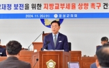 함평군 윤규진 기자2024. 12.22[한국저널뉴스]장성군의 내년도 본예산이 올해보다 8.4%, 440억 오른 5708억 원으로 확정됐다. 지난 19일 열린 제365회 장성군의회 제2차 정례회 제3차 본회의에서 군이 제출한 예산안이 원안 가결됐다. 분야별 주요사업을 살펴보면 먼저 ‘공공행정분야’는 의회청사 신축(28억), 청년센터 건립(9억) 등을 추진한다. ‘공공질서‧안전분야’에선 자연재해위험 개선지구 정비사업(137억), 내계2지구 급경사지 붕괴위험지역 정비사업(17억) 등 군민 안전에 중점을 둔다. ‘교육분야’에서는 교육기관 보조사업(17억), 초‧중‧고등학…