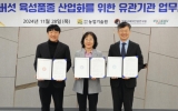 순천시 윤규진 기자2024. 12.06[한국저널뉴스]장흥군버섯산업연구원이 진균 소재의 산업화와 기업·연구기관의 상생을 위해 전라남도농업기술원, ㈜팜스빌과 손을 잡았다. (재)장흥군버섯산업연구원은 지난 28일 진균류 바이오·헬스 소재 상용화 지원사업의 일환으로 전라남도농업기술원과 건강기능식품 개발 및 유통 전문 기업인 팜스빌과 함께 진균류 소재 개발 및 상용화를 위한 업무협약(MOU)를 체결했다고 밝혔다. 이날 협약식에는 김행란 전라남도농업기술원장, 김경제 (재)장흥군버섯산업연구원장 직무대리, 이병욱 ㈜팜스빌 대표 등이 참석했다. 이들 기관은 전남농업기술원에서 개발…