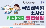 [한국저널뉴스]순천시는 오는 5일 10시부터 16시까지 순천시 시민공익활동지원센터(순천시 중앙시장길 31)에서 국민권익위원회 ‘달리는 국민신문고’를 운영한다고 전했다. ‘달리는 국민신문고’는 국민권익위원회가 주관하는 프로그램으로, 시민들이 공공 서비스와 관련된 다양한 불편 사항을 직접 상담하고 해결할 수 있는 자리이다. 이번 행사에서는 권익위 조사관과 전문가 20여 명이 참여해 행정, 교육, 보훈, 세무, 복지, 노동, 건축 등 공공 서비스뿐만 아니라 소비자 피해, 지적 분쟁, 신용 회복, 민․형사 생활법률 등 생활 속 다양한…