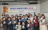 동구 윤규진 기자2024. 10.25[한국저널뉴스]광주 동구는 지난 23일 평생학습관에서 ‘광주 동구 평생학습관계자 워크숍’을 개최했다고 밝혔다. 이 행사는 전국평생학습도시협의회 후원으로 평생교육 관계자의 평생교육 공동 협력사업 발굴과 네트워크 활동 성과 공유를 하기 위해 마련됐다. 워크숍에는 2024년 활동한 재동이 강사, 까치홍보단, 행복학습 매니저 등 40여 명이 참여했으며 2024년 평생학습 성과보고, 평생학습체험으로 냅킨 원목 트레이 만들기 체험행사 등을 진행했다. 임택 동구청장은 “동구가 평생학습도시협의회 광주 대표 도시인만큼 앞으로도 다양한 평생학…